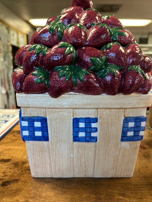 Vintage Strawberry Basket Cookie Jar