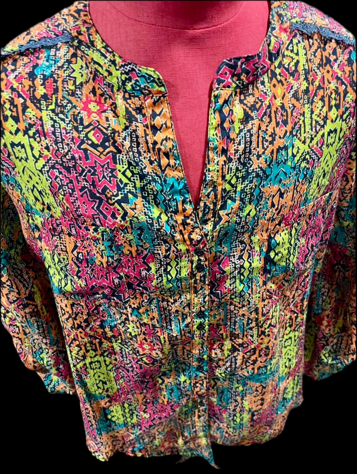 The Colorful 2x Top by Westbound Women is perfect for adding a pop of color to your wardrobe. Made with 100% polyester, this top features 3/4 sleeves and a vibrant design that will elevate any outfit. Stay comfortable and stylish with this versatile piece.