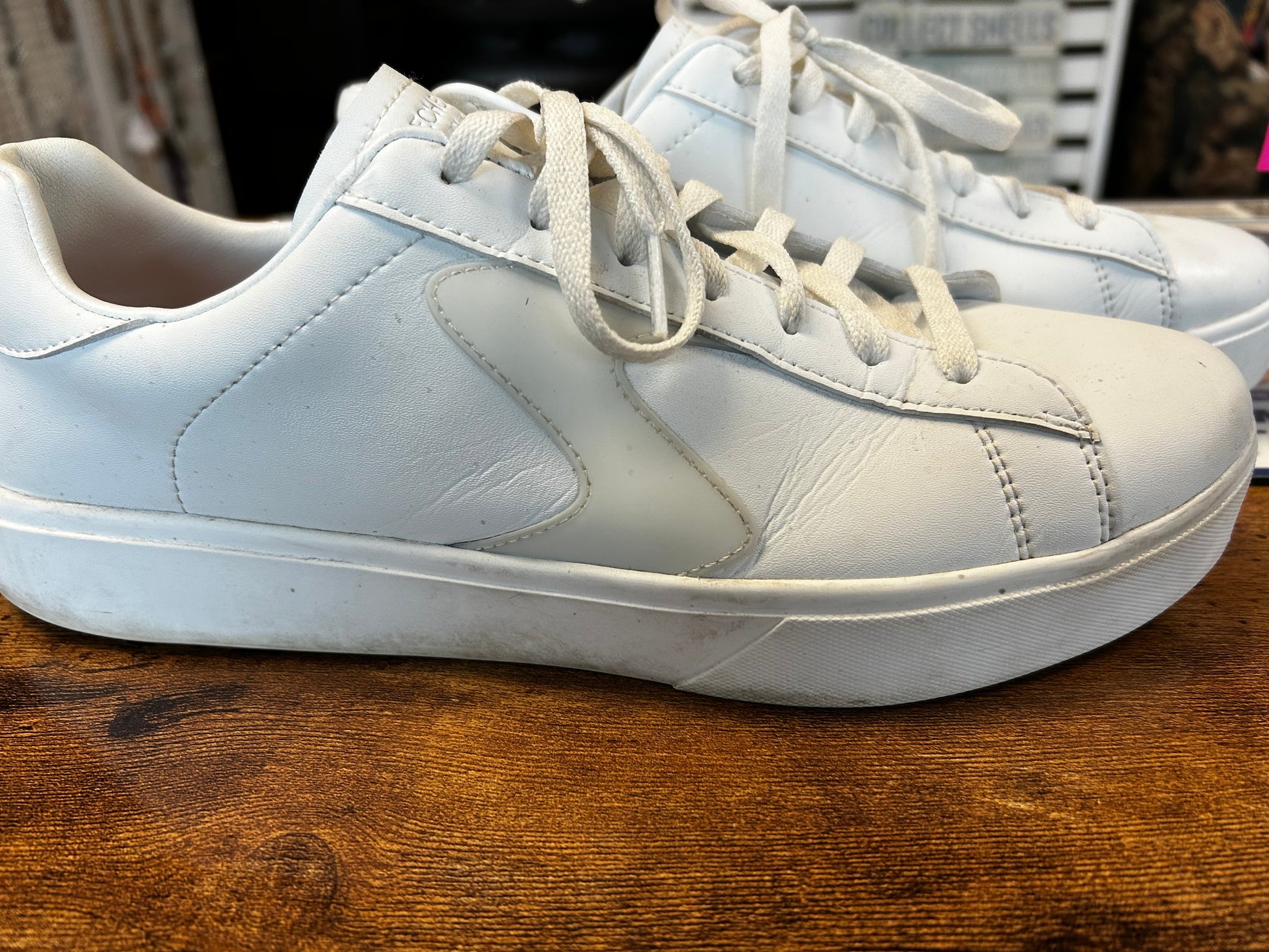 The Sketchers Size 11W memory foam tennis shoes provide enhanced comfort with their contoured memory foam insoles, which adapt to the foot’s shape, potentially reducing fatigue during prolonged use. The shoes are designed for stability and support, making them suitable for various tennis court surfaces and daily activities.