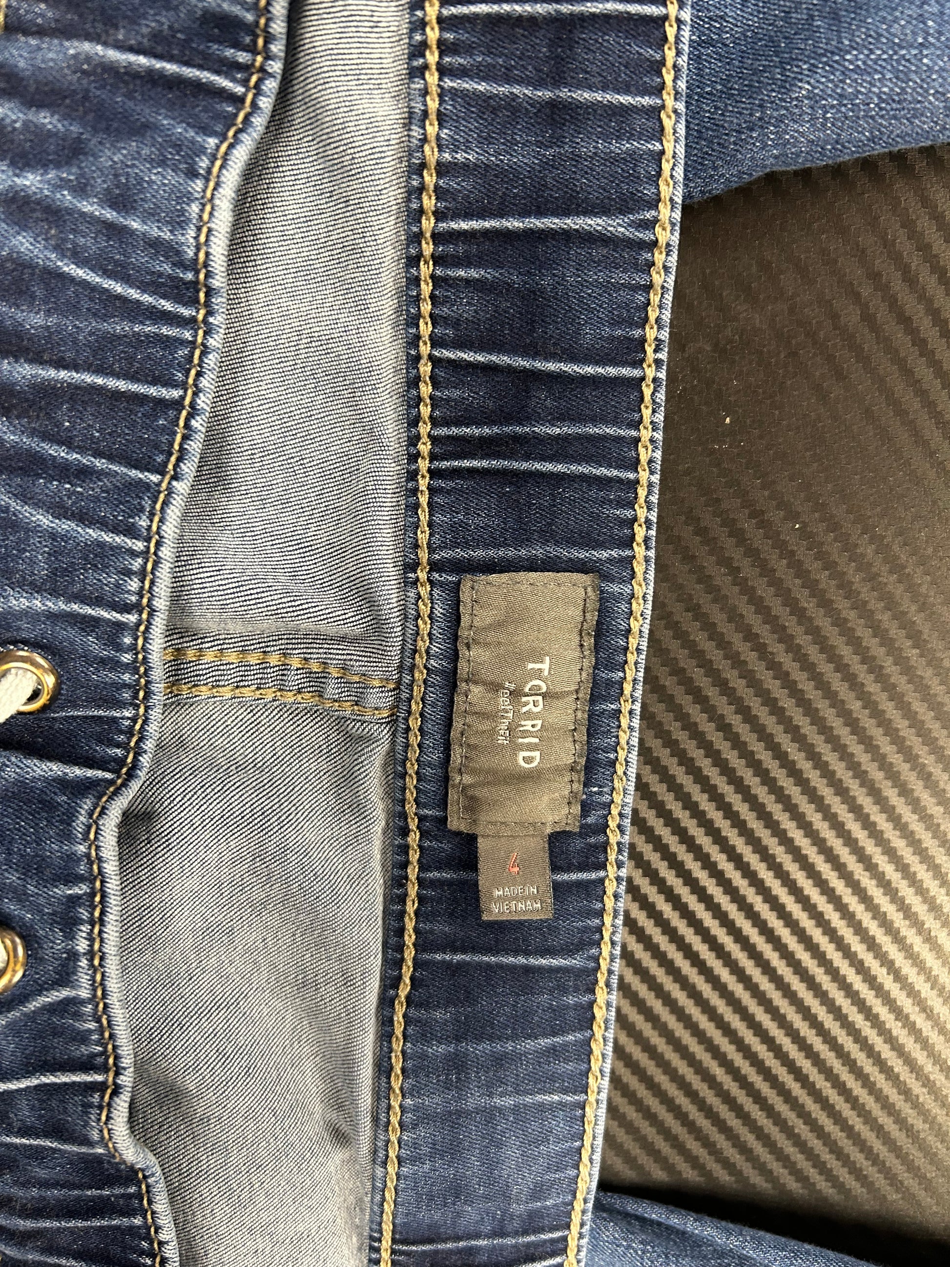 The Torrid Plus Size Jeans 4 are a stylish and comfortable option for women looking for a relaxed fit. Made from a cotton blend denim fabric with a medium wash, these solid blue jeans feature an elastic waist and drawstring closure for added convenience. The straight style and 25-inch inseam make them versatile for everyday wear, while the pockets provide practicality. Perfect for a casual day out or lounging at home, these jeans by Torrid offer both style and comfort for plus-size women
